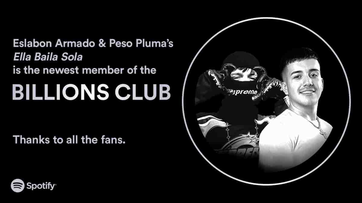 Spotify ha revelado que la colaboración entre Eslabon Armado y Peso Pluma, titulada “Ella Baila Sola”, ha alcanzado la asombrosa marca de mil millones de reproducciones en la plataforma. Este logro extraordinario coloca a la canción como la primera de Música Mexicana en unirse al prestigioso Billions Club.