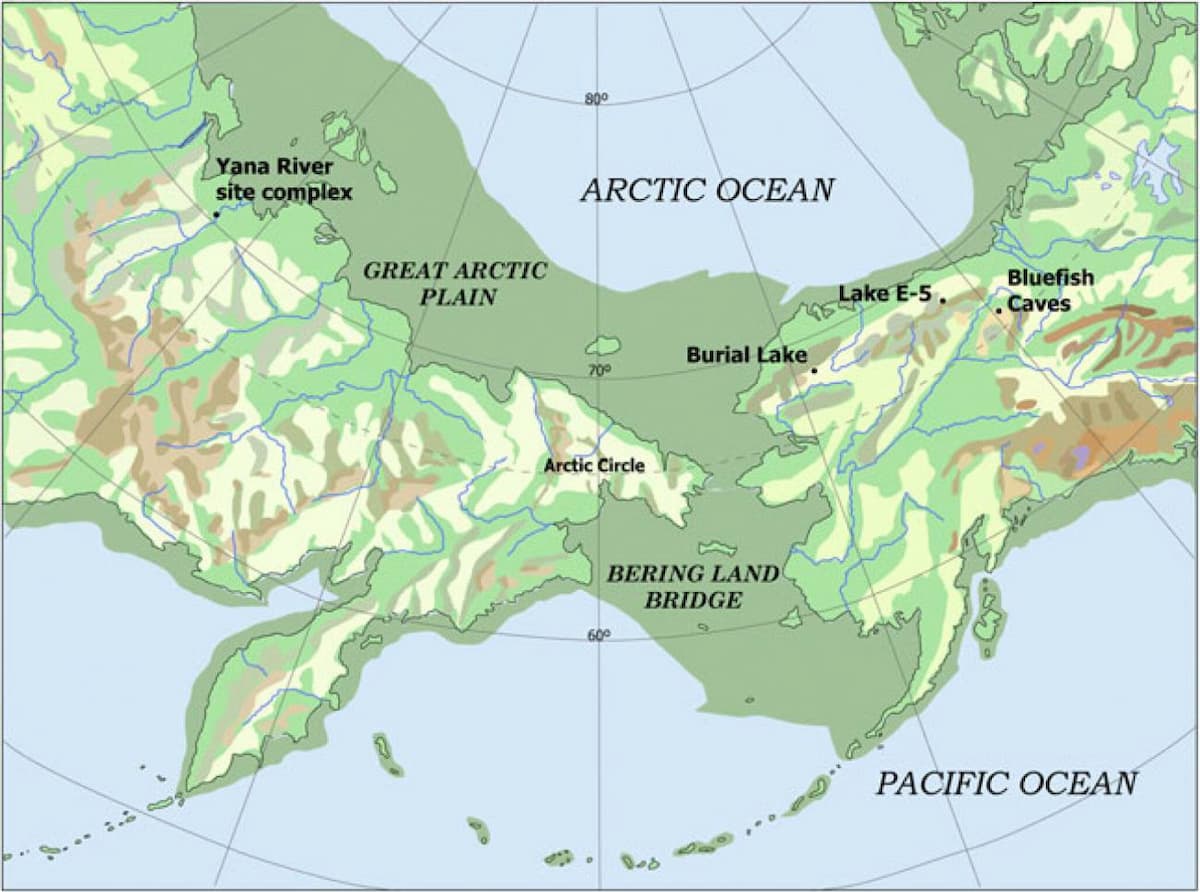 Imagen adjunta: Mapa migratorio. Región de Beringia. /Richard Scott et al.